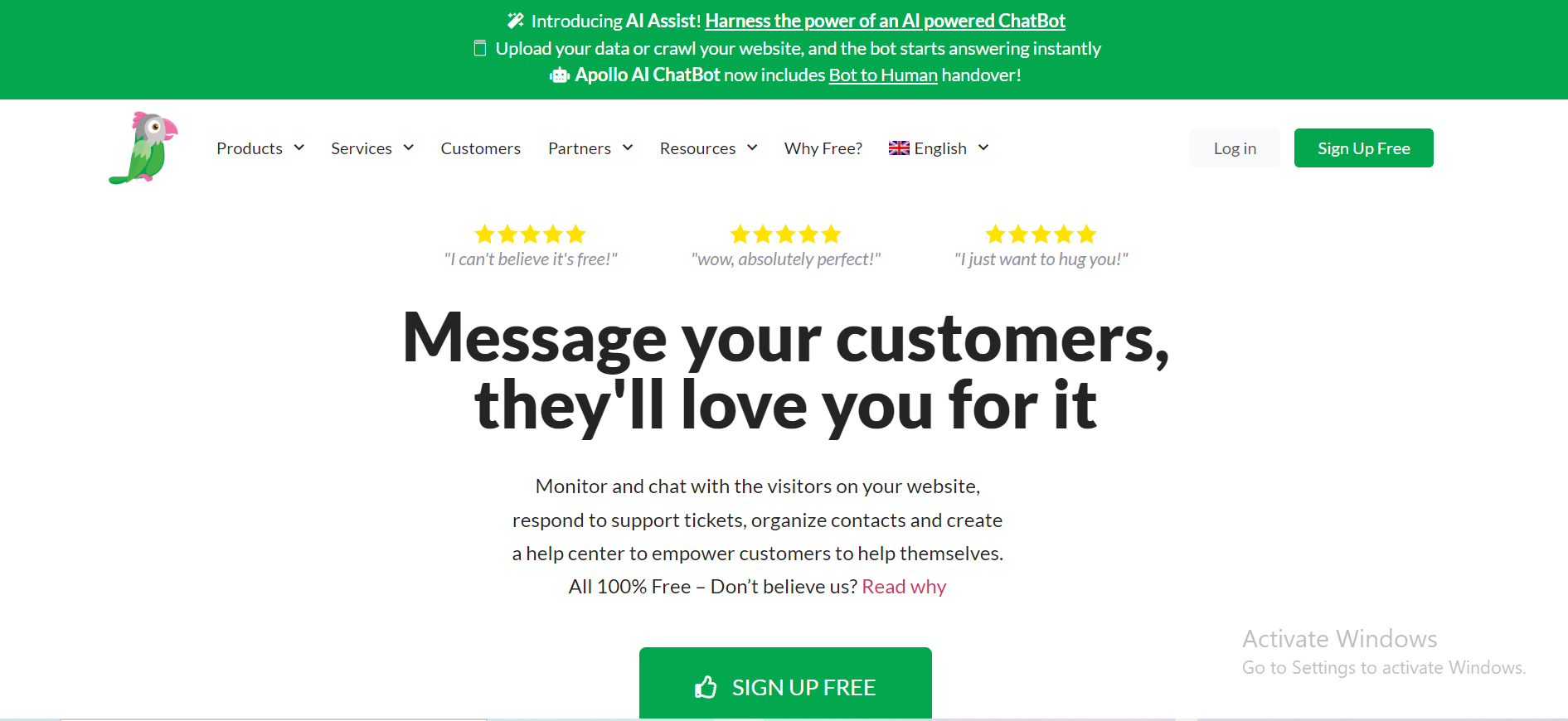 MobileMonkey’s analytics and reporting tools provide actionable insights into chatbot performance and user interactions.